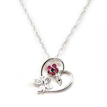 Pendentif en Argent Fin en Forme de Papillon, Coeur et Fleur sur une Chaîne de 45cm par La Olivia Collection