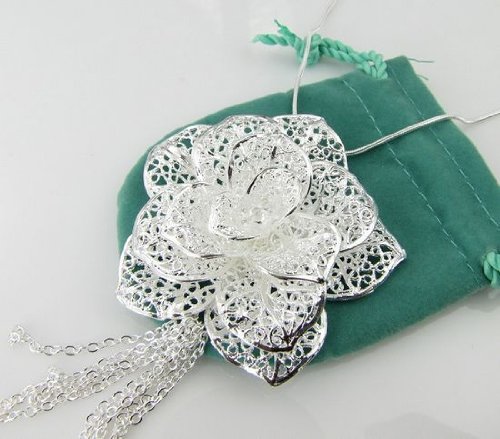 Argent. Magnifique Collier fleur dentelles argentées, nouveauté, bague, bracelet, boucles d'oreilles assortis disponibles: Amazon.fr: Bijoux