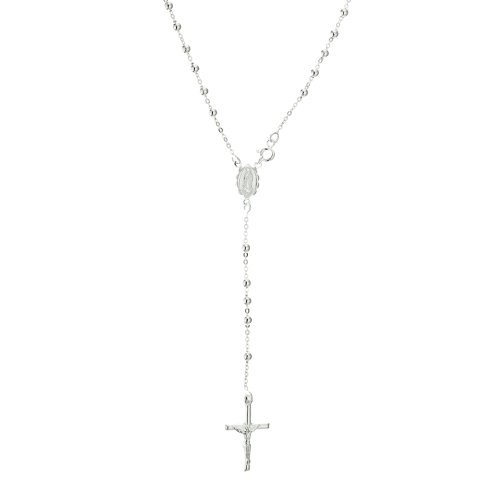 Chapelet - Collier Mixte - Argent 925/1000 14.7 Gr Chapelet Collier Fashion Femme Perles Rose Collier Chapelet Acier Croix Strass - Longueur : 55 cm