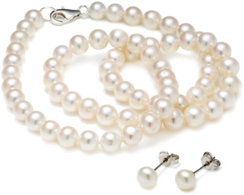 Orchira - Parure collier et boucles d'oreilles - Argent 1 Gr - Perle d' Eau douce. Miore - USP031W - Parure Collier et Boucles d'Oreilles Femme
