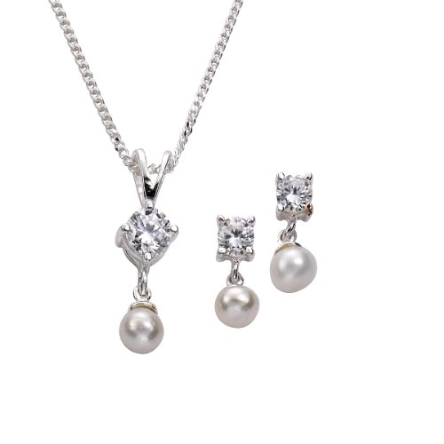 Zeeme Basic - 500201208-42 - Parure Collier et Boucles d'Oreilles Femme - Argent 925/1000 - 4.7 gr - Oxyde de Zirconium - Perle d'eau douce - Blanc - 42 cm