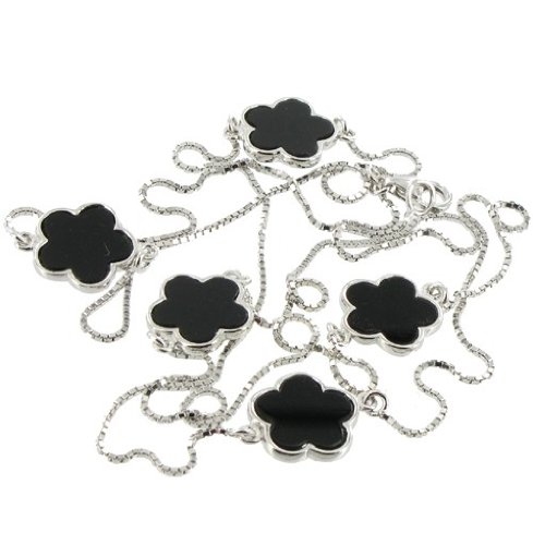 Sautoir Chance Argent 925 et Onyx Noir - Pierres Fines, Nacres : en vente sur RueDuCommerce