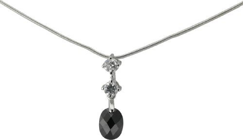 R & T - 80715 - Collier avec Pendentif Femme - Argent 925/1000 - 3.9gr - Pendant Oxydes de Zirconium Noir et Blancs - 42 cm
