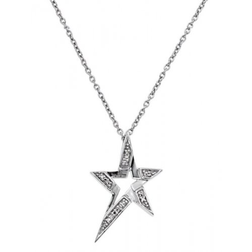 Collier acier argenté avec pendant en forme d'étoile, certie de strass -
