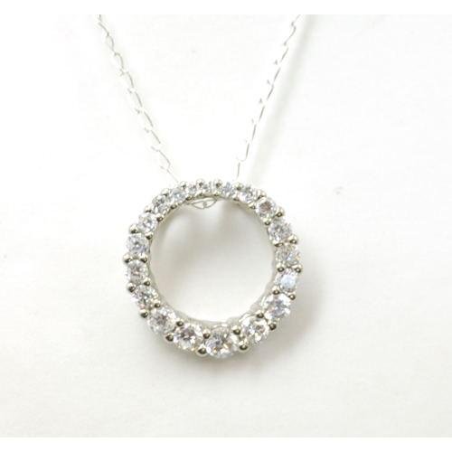 Pendentif Rond en Argent Fin 925 avec Zirconium Cubiques sur Chaîne de 45cm par La Olivia Collection
